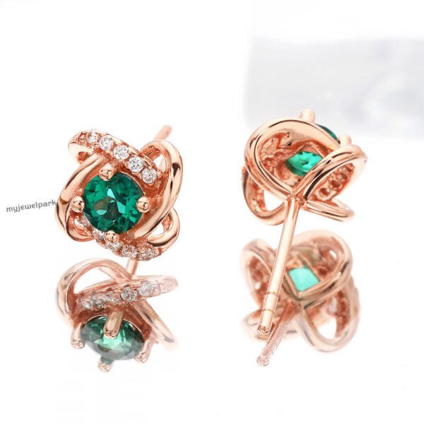 18K Vintage Gorgeous Rose Gold Emerald Stud Earrings Lab Grown Emerald