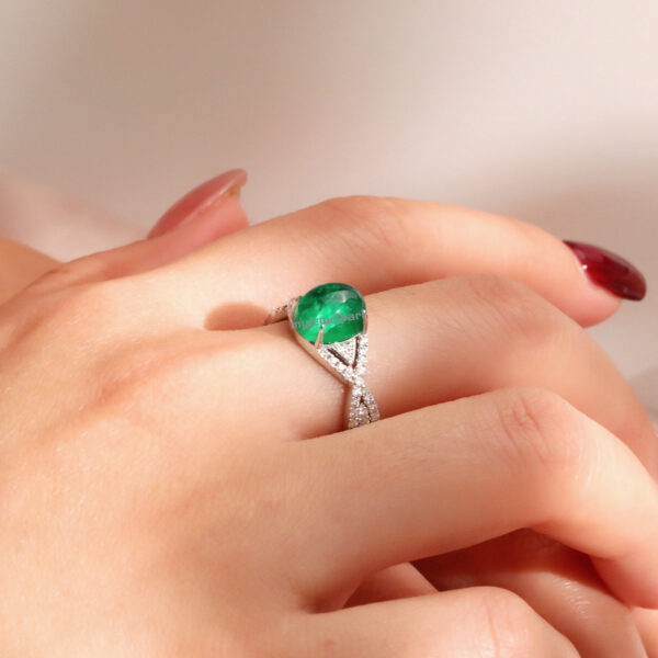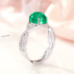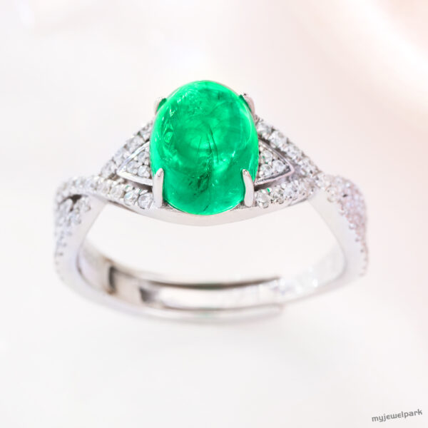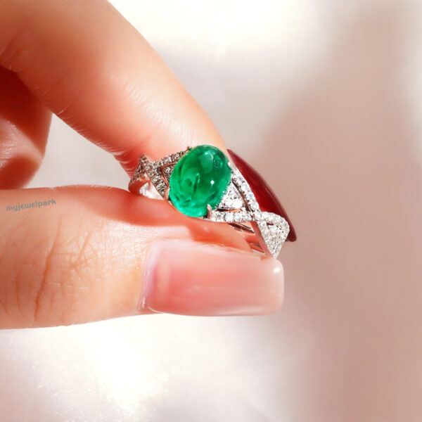 When simplicity meets soul. 💚 This 18K white gold ring cradles a 3.56ct Colombian cabochon emerald—a gem that feels as timeless as love itself. The clean, modern lines and delicate diamond accents make it an effortless standout, whether you’re saying “yes” or just saying “this is so me.” It’s the kind of piece that whispers elegance and speaks straight to the heart.