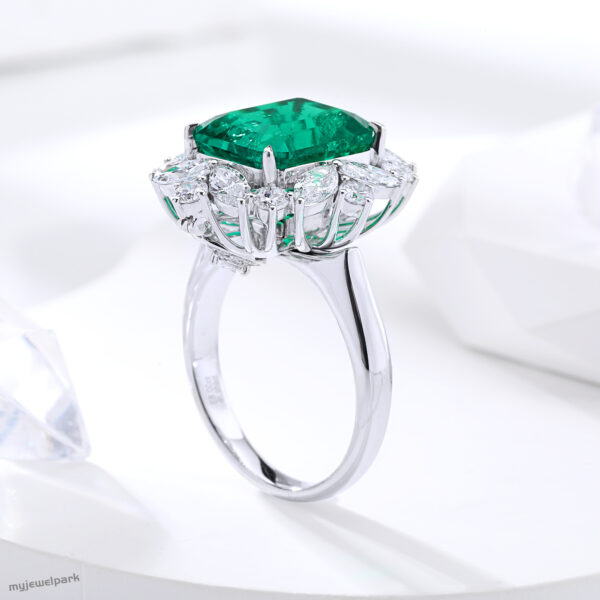 18K White Gold 6.68ct Emerald Ring Dual Use Lab Grown Emerald