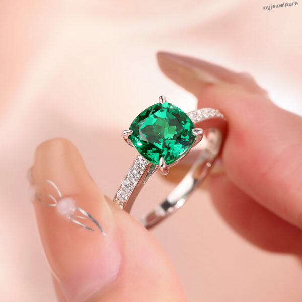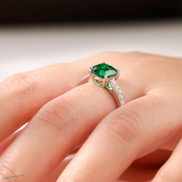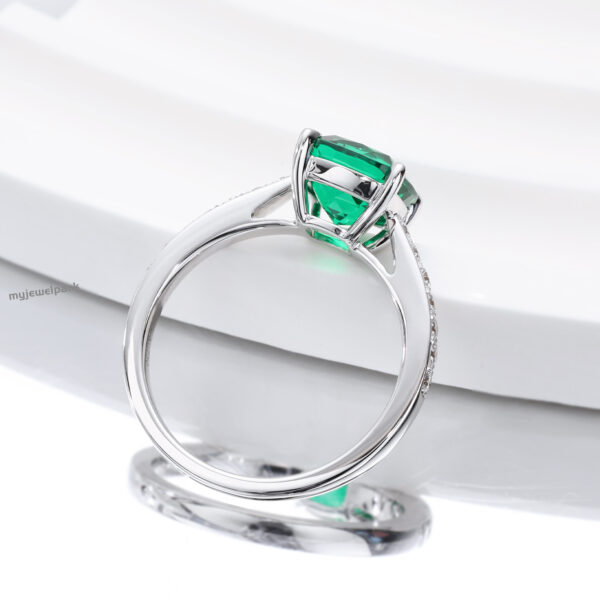 18K White Gold Half Diamond 3.42ct Emerald Ring Lab Grown Emerald