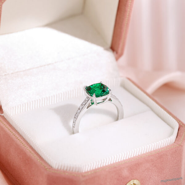 This 18K white gold ring features a vibrant 3.42ct lab-grown emerald that catches the light—and attention—from every angle. Set in a classic four-prong style with a sleek half-diamond band, it’s the kind of timeless elegance that never goes out of style. Whether you’re celebrating a milestone or just treating yourself (as you should!), this ring is designed to make you feel effortlessly radiant, every single day.