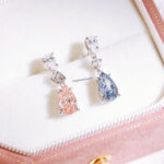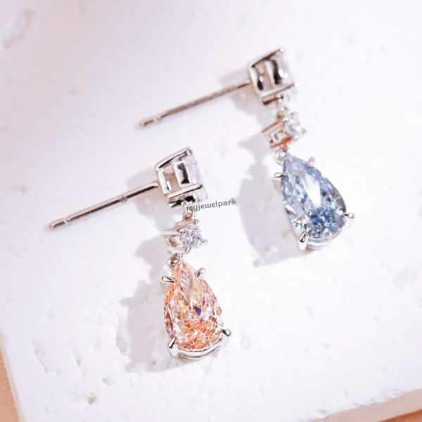 These two-tone pear diamond earrings are simply stunning—one in soft blush, the other in icy blue. Crafted in 18K white gold with 2.35ct cultured diamonds, they’re bold yet elegant, perfect for anyone who loves standing out with refined sophistication.