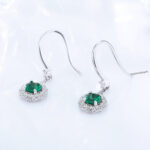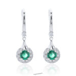 These 18K white gold dangle earrings feature round lab-grown emeralds wrapped in a delicate halo of sparkling diamonds — classy with a playful twist. They move with you, adding just the right amount of sparkle whether you’re headed to brunch or dressing up for a night out. Elegant, effortless, and always a conversation starter.