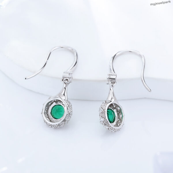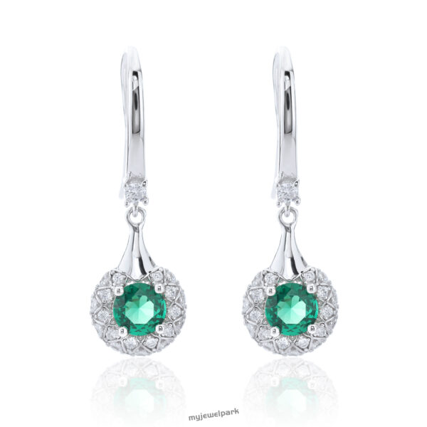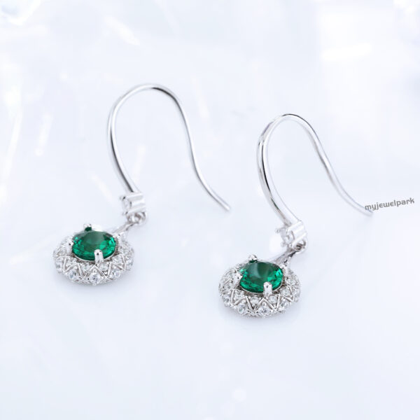 18K White Gold Round Lab Grown Emerald Halo Dangle Earrings