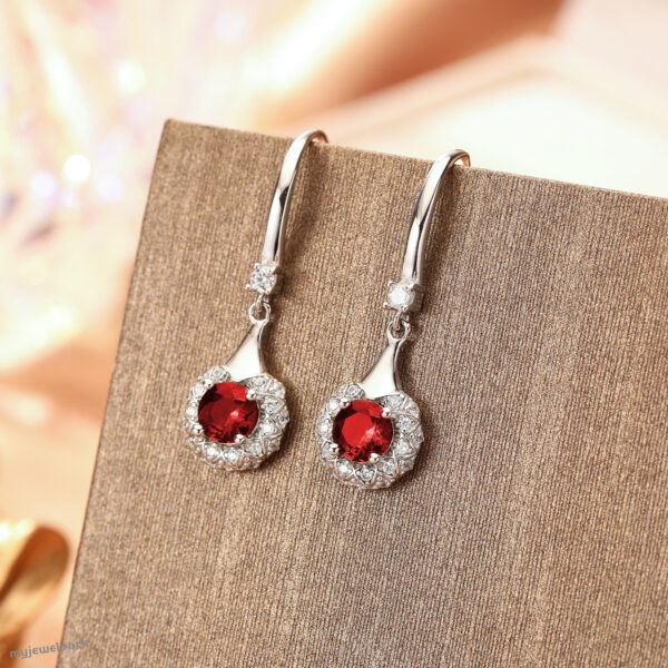 18K White Gold Round Lab-Grown Ruby Halo Dangle Earrings
