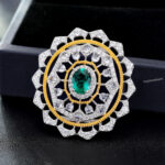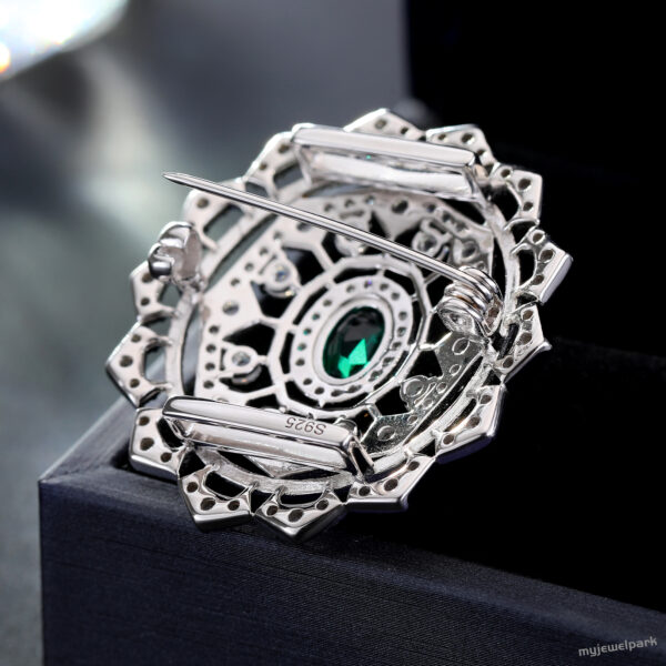 925 Silver Emerald Lab Diamond Art Deco Brooch