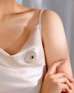 This Art Deco-style brooch is like wearing a little piece of history. The emerald sparkles at the center like it knows it’s the star, surrounded by lab-grown diamonds and vintage silverwork that feels both bold and graceful. It’s elegance with a story—ready to make yours unforgettable.