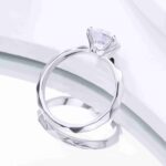 925 Sterling Silver Gold Plated Simple Round Diamond Four-Prong Engagement Ring