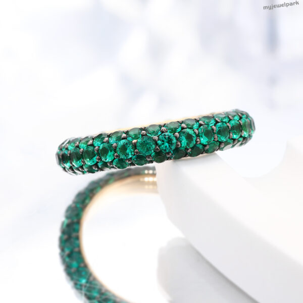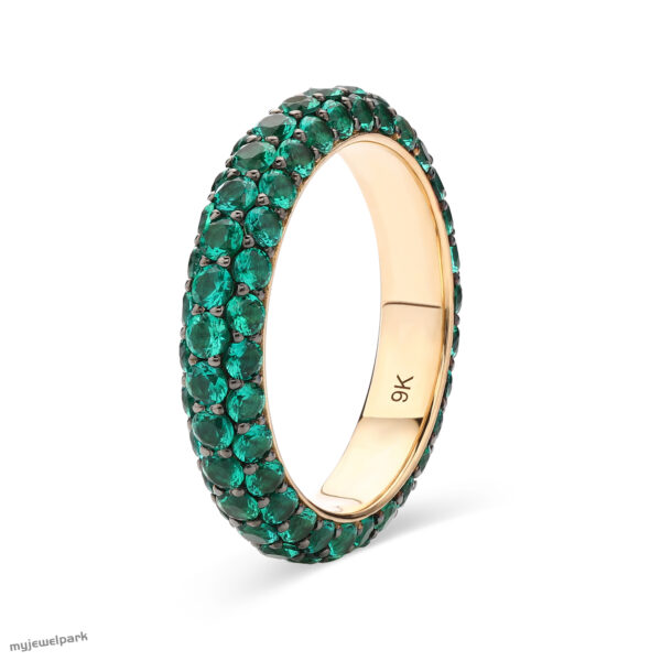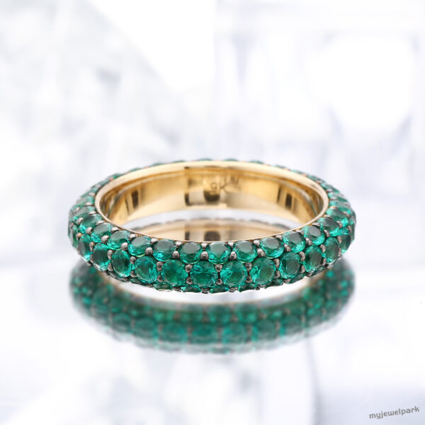 9K Gold Lab-Grown Emerald Round Pave Eternity Ring