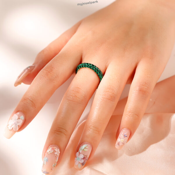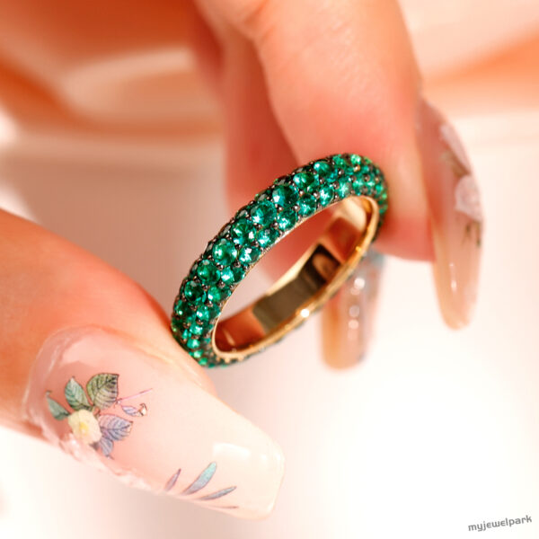 So lush and vibrant, this emerald eternity ring feels like pure green energy on your hand. Every sparkle catches the eye but in the most effortless way. It’s one of those pieces you’ll never want to take off.