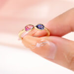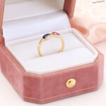 Sweet and simple with a twist—this 9K gold ring pairs pink and blue sapphires in a graceful infinity design. It’s playful yet timeless, perfect for stacking or wearing solo when you want a hint of color and a touch of meaning.
