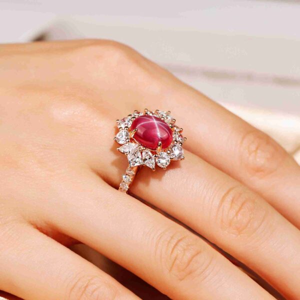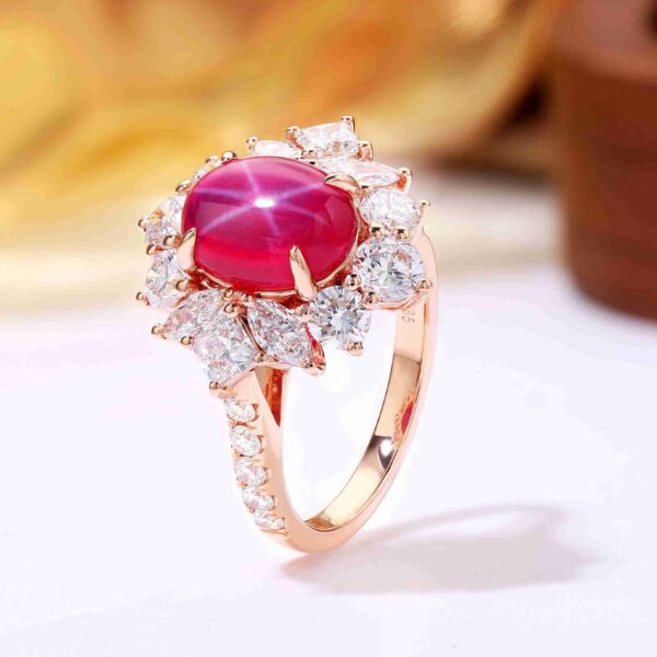 Cabochon Star Ruby Marquise Halo Rose Gold Ring by MyJewelPark