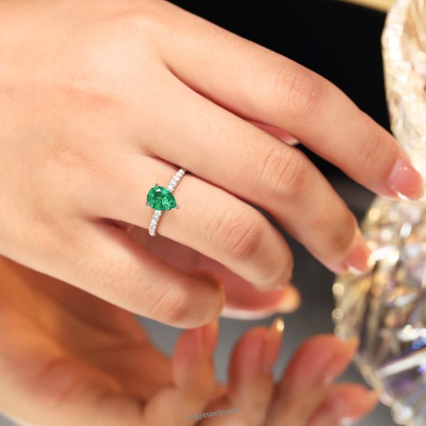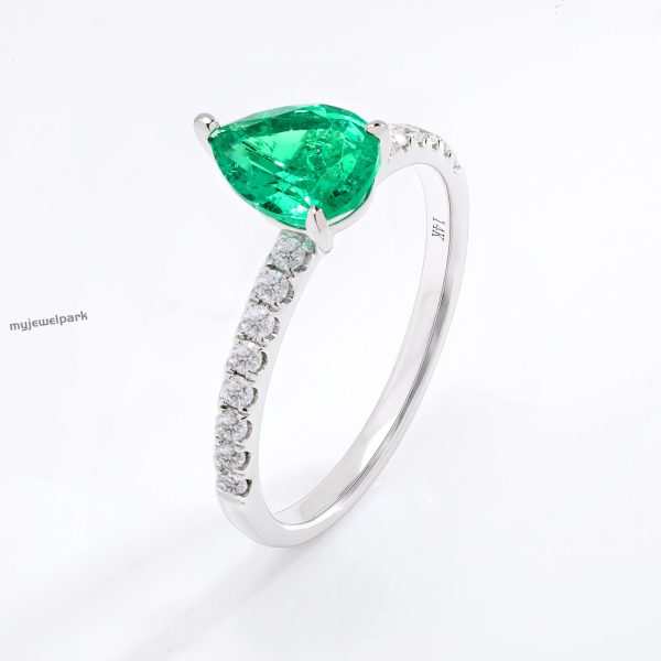 Delicate Petite Pear Shaped Emerald Ring