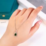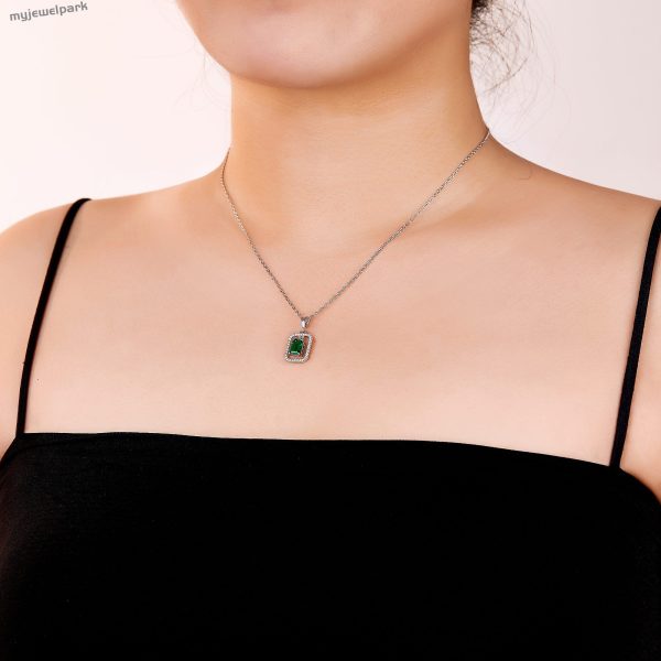 Delicate Rectangular Zambian Emerald Hollow Necklace