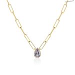 The focal point of the necklace is its delicate teardrop-shaped pendant, which is inspired by water drops in nature and symbolizes purity and vitality. The shape of the teardrop is smooth and dynamic, which can perfectly set off the wearer’s neck line, adding a touch of softness and agility.