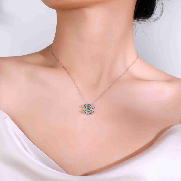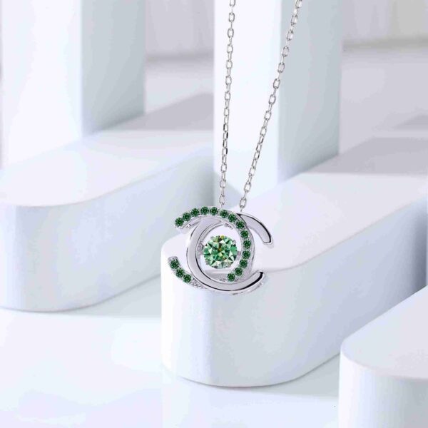 Double C Pavé Dancing Green Moissanite Necklace by MyJewelPark