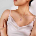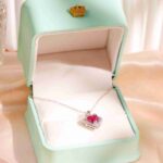 In this necklace, a vivid heart shaped ruby glows beneath a polished bow, framed by a pavé halo that amplifies its romantic brilliance. Symmetry and gentle sparkle draw the eye to the gemstone’s warm, expressive color.