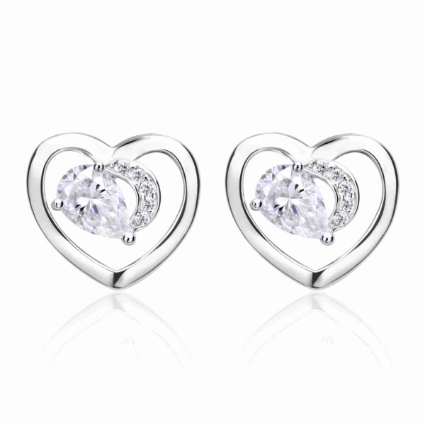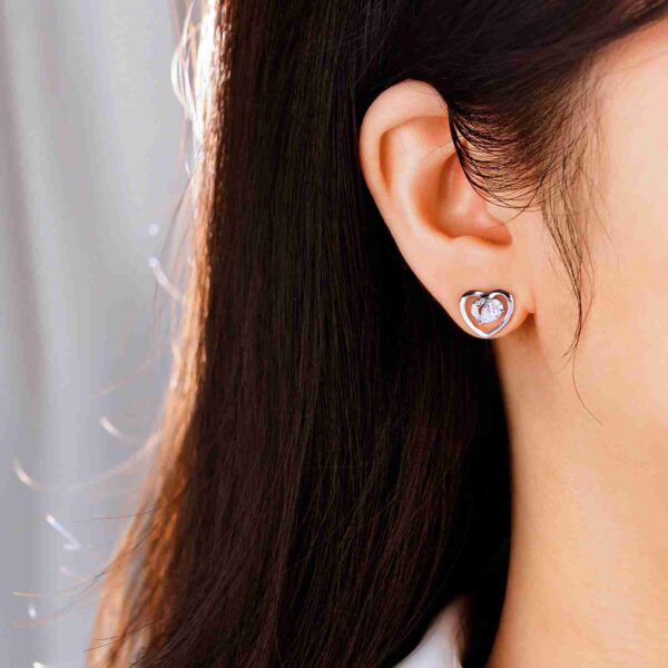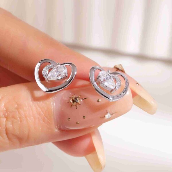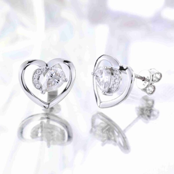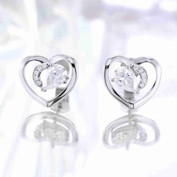 On these earrings, a 0.20-carat pear-shaped moissanite rests within an open heart frame, accented by a delicate pavé curve. The interplay of soft romance and modern sparkle creates a graceful, meaningful expression.