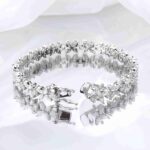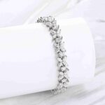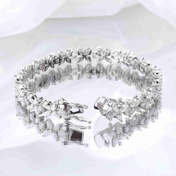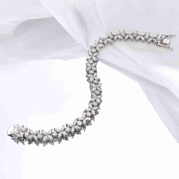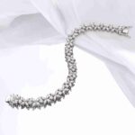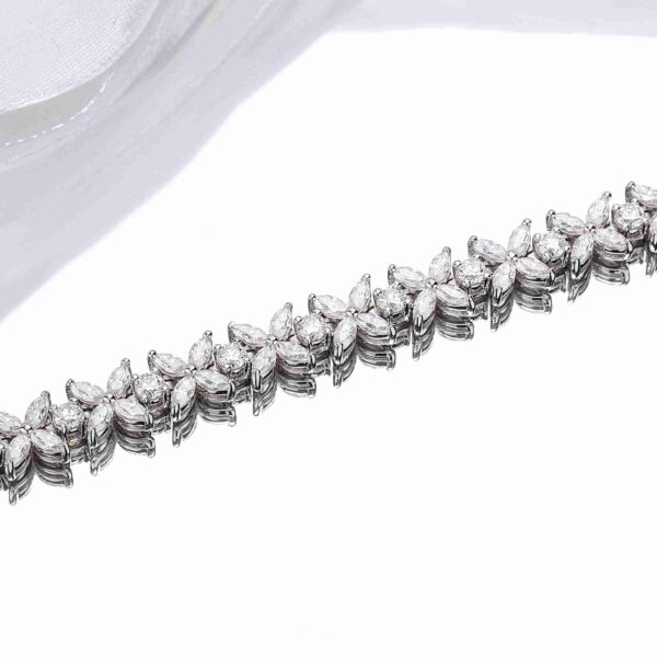 In this bracelet, marquise cut moissanites form delicate pavé flower motifs, repeated in a graceful tennis design. Symmetry and rhythm enhance the brilliance of each stone, creating a refined sparkle that feels feminine, luminous, and effortlessly elegant.