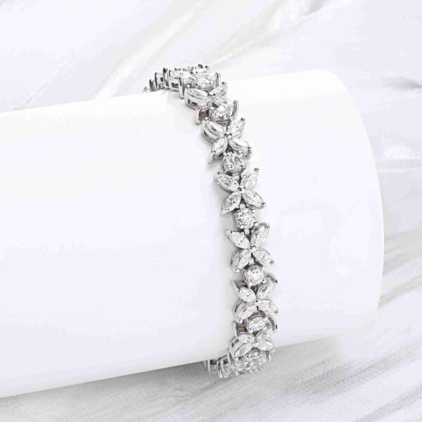 Marquise Cut Moissanite Pavé Flower Tennis Bracelet by MyJewelPark