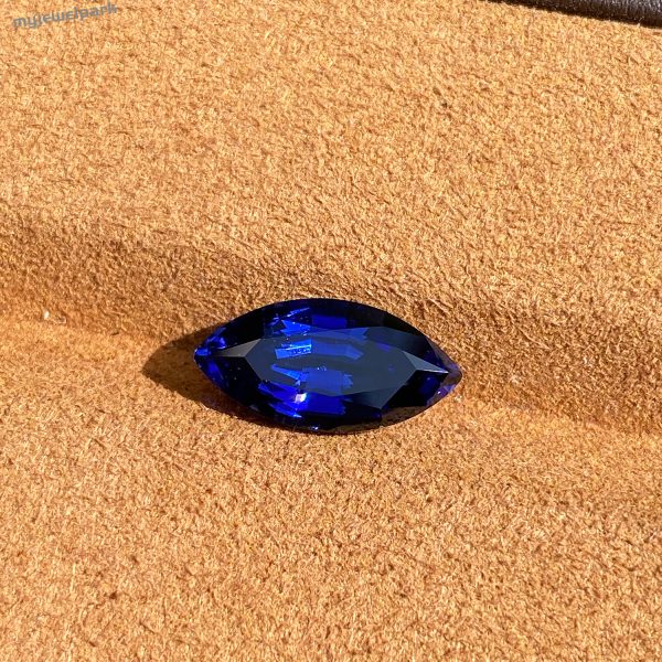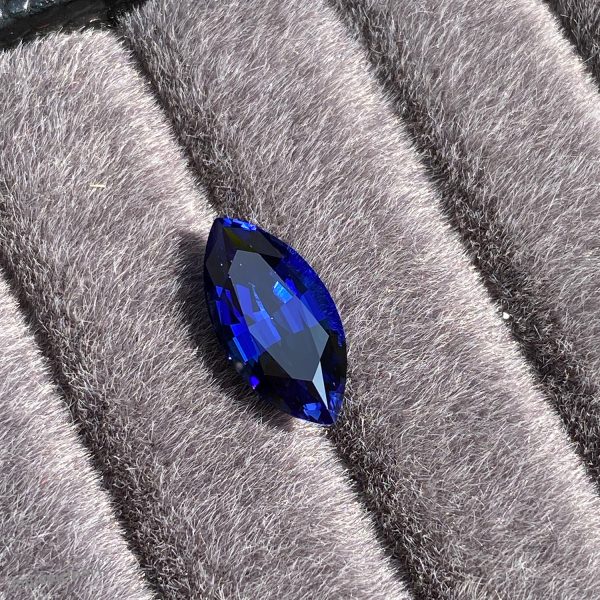 This is a marquise-shaped lab-grown royal sapphire, measuring 15×7.56x6mm and weighing 5.28ct. This sapphire is hand-cut by a master craftsman with more than 20 years of experience. With his rich experience and superb skills, the master craftsman cut the gemstone in detail, so that each facet can perfectly reflect the light, showing the deep and charming color of the sapphire.