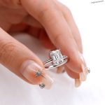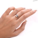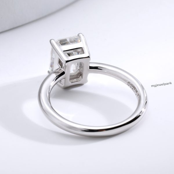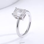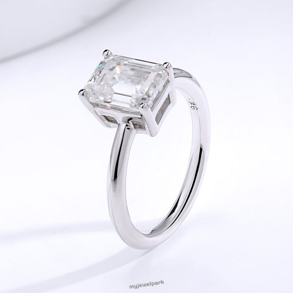 Using a rectangular-cut gemstone as the main stone, this design is simple and elegant, and the clear lines and bright light of the gemstone are its charm.