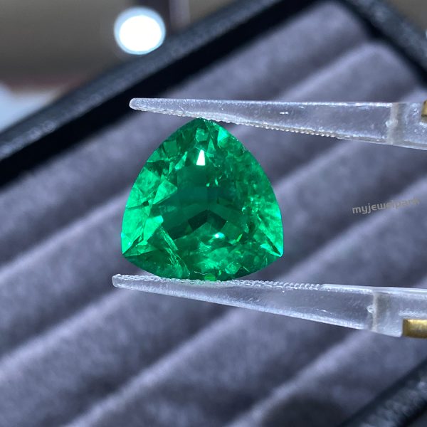 Dear, look at this triangular-cut lab-grown Colombian emerald. It is 7.6 ct and very eye-catching! Emerald has always been the darling of the gemstone world, symbolizing hope and happiness. Its bright green color seems to condense the vitality of nature, and its cutting is exquisite, making every ray of light shine with charming charm. Lab-grown emeralds ensure high quality, but the price is more affordable. Wearing it, you will be the focus of the audience!