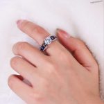 This eye-catching crown-shaped ring is inlaid with a dazzling gemstone in the center and surrounded by delicate crown-shaped claws. Each claw is like a guarding glimmer of light. The ring body has smooth lines and the details are embellished with tiny diamonds, showing a unique style that is both noble and fresh. It is suitable for anyone who pursues quality and personality.