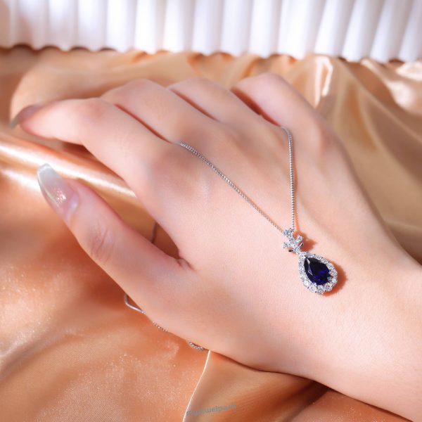 Water drop elegant lab sapphire necklace personality classic